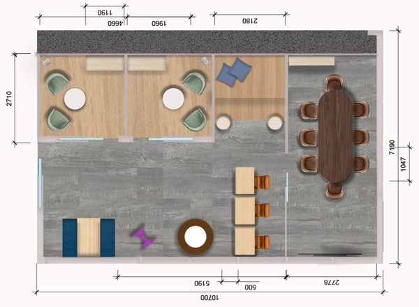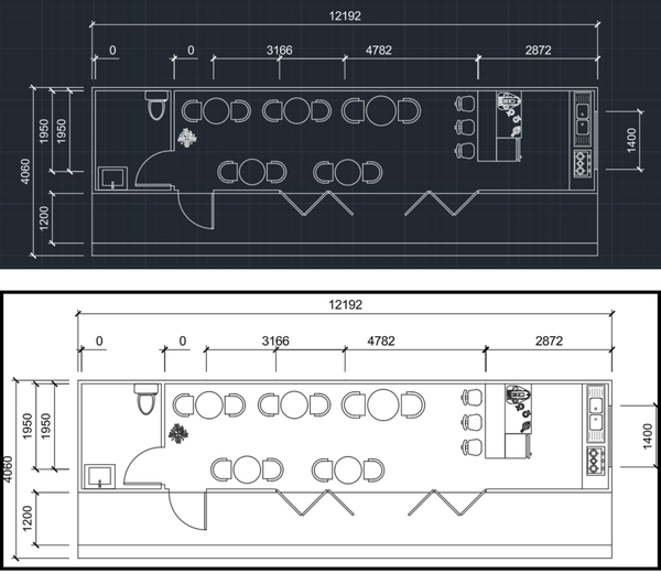 Service Pod - The café’s design combines aesthetics, functionality, and placemaking to create a warm, efficient, and welcoming environment. Light wood flooring, beige seating, and greenery establish a cozy atmosphere, while balanced table alignment and clear zoning from outdoor seating to indoor dining and back-of-house offer a smooth visual and spatial flow. The kitchen supports efficient workflow with a linear layout and hygiene-focused zoning, while flexible table arrangements and wide walkways ensure accessibility and adaptability. The wayfinding is intuitive with a transparent frontage, clear sightlines, and pendant lighting, guiding guests through the space. Creative placemaking is achieved through an open kitchen that encourages interaction, a reconfigurable dining area for events, and outdoor seating that connects the café to the street. Personal touches like books and plants add charm and shareable moments, making the café not just a dining spot, but a community hub that encourages repeat visits.